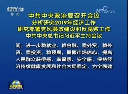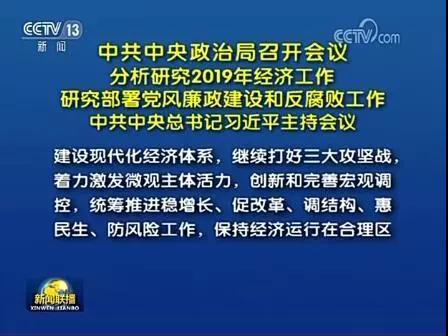 新华社北京12月13日电 中共中央政治局12月13日召开会议,分析研究2019年经济工作;听取中央纪律检查委员会工作汇报,研究部署2019年党风廉政建设和反腐败工作。中共中央总书记习近平主持会议。